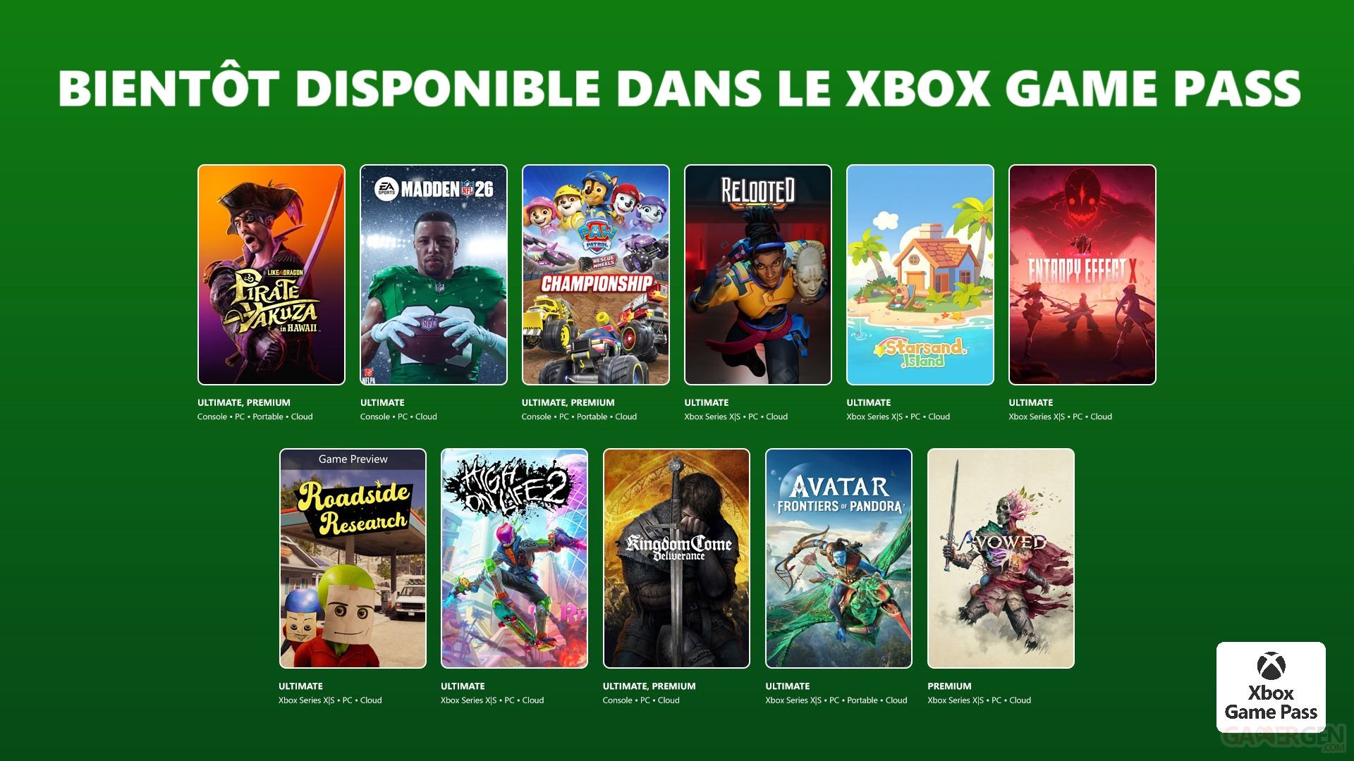 - Madden NFL 26 (Cloud, console et PC) - 5 février - Game Pass Ultimate, PC Game Pass